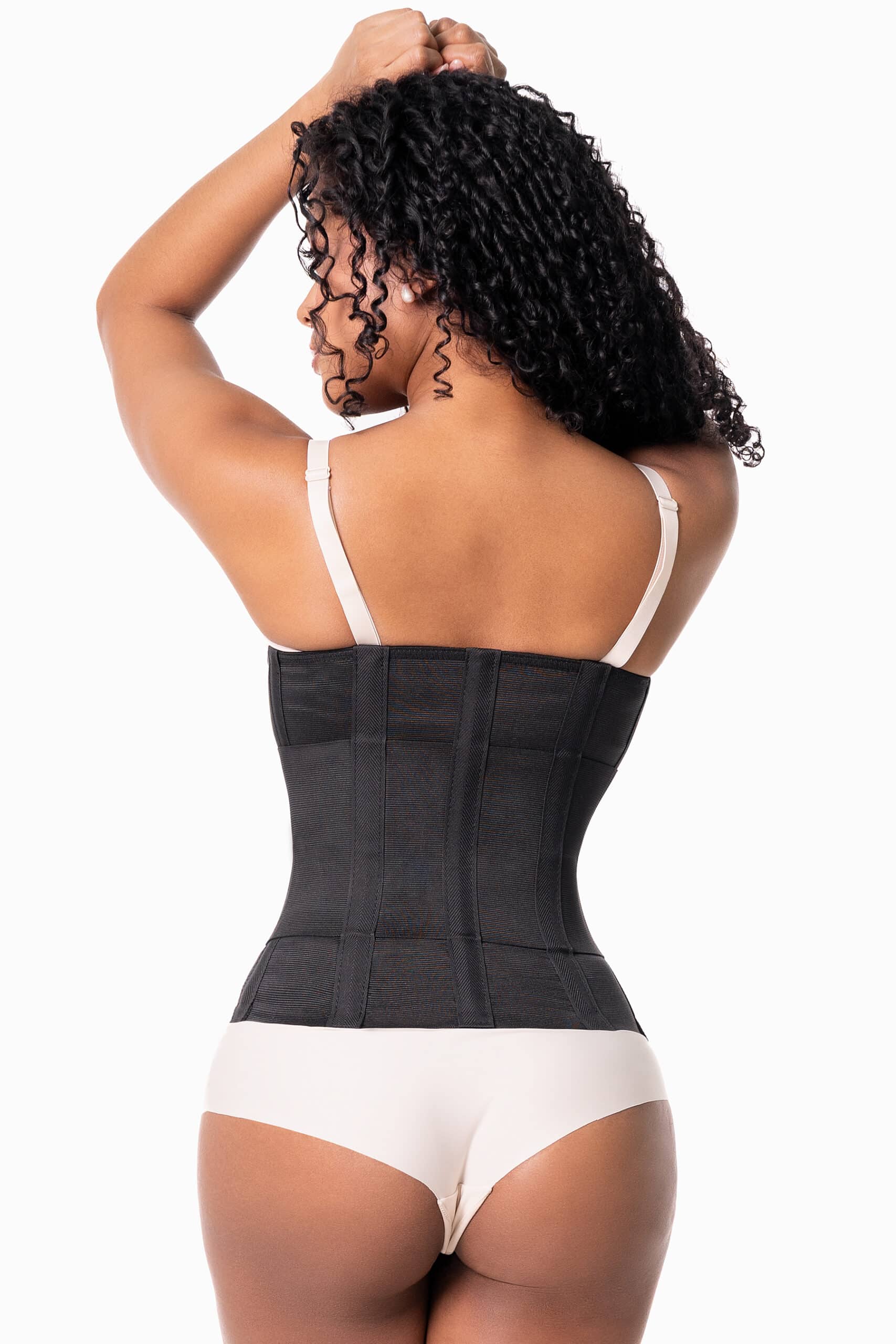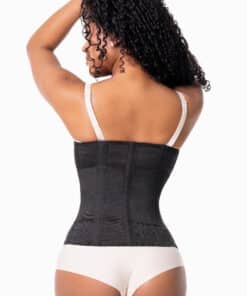 Ce modèle est relativement long (environ 30cm). Les 5 armatures sont placées dans le dos afin d’apporter un maintien optimal.La ceinture est à porter de préférence sur un débardeur pour éviter les frottements.